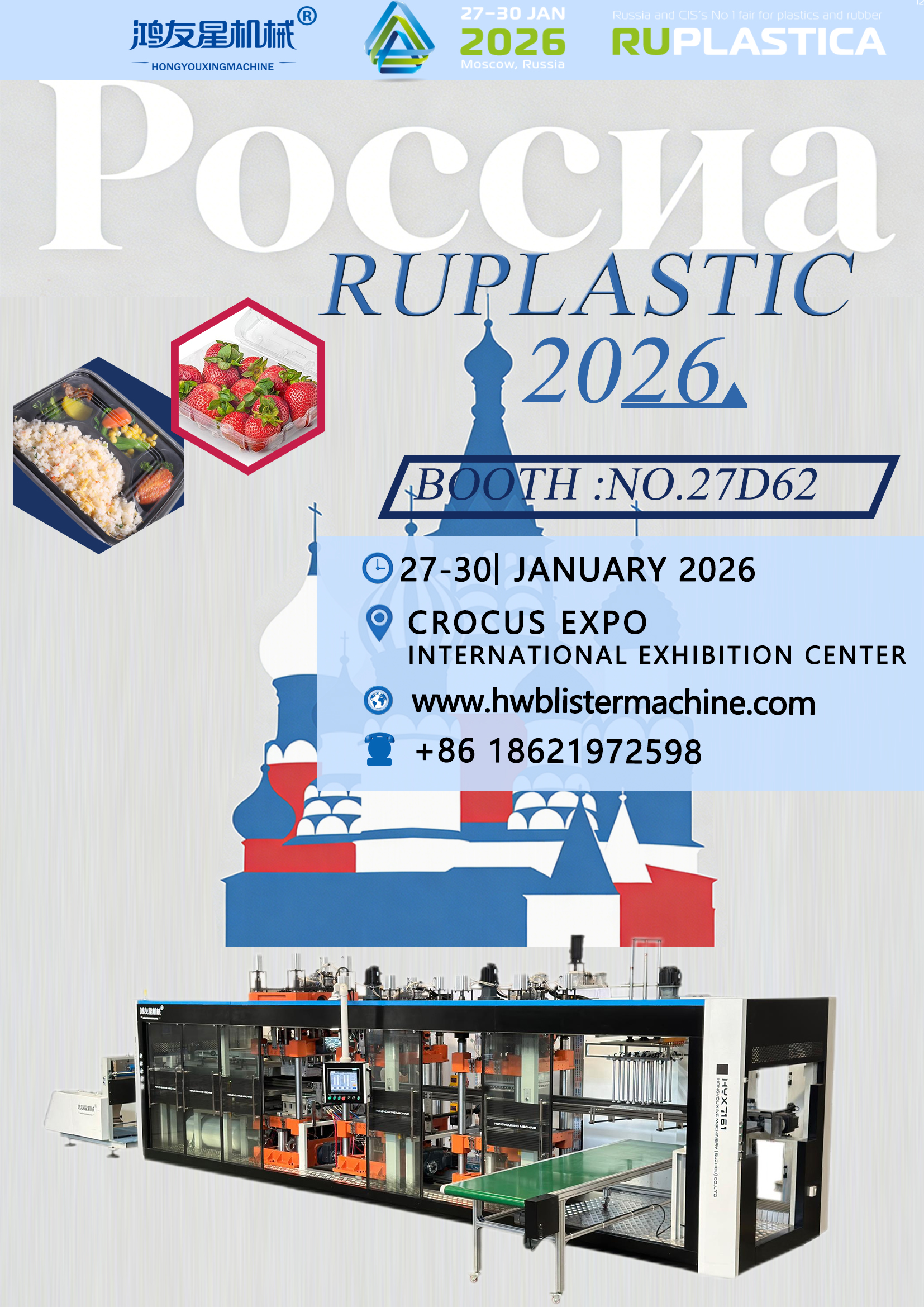 ХОНГЁУСИНГ МАШИНАRY (СУЧЖОУ) CO., LTD. рада сообщить о своем участии в РУПЛАСТИКА 2026 , ведущая международная выставка пластмасс и каучука в России и регионе СНГ. Выставка будет проходить с 27–30 января 2026 г. в МВЦ «Крокус Экспо» , Москва, Россия.